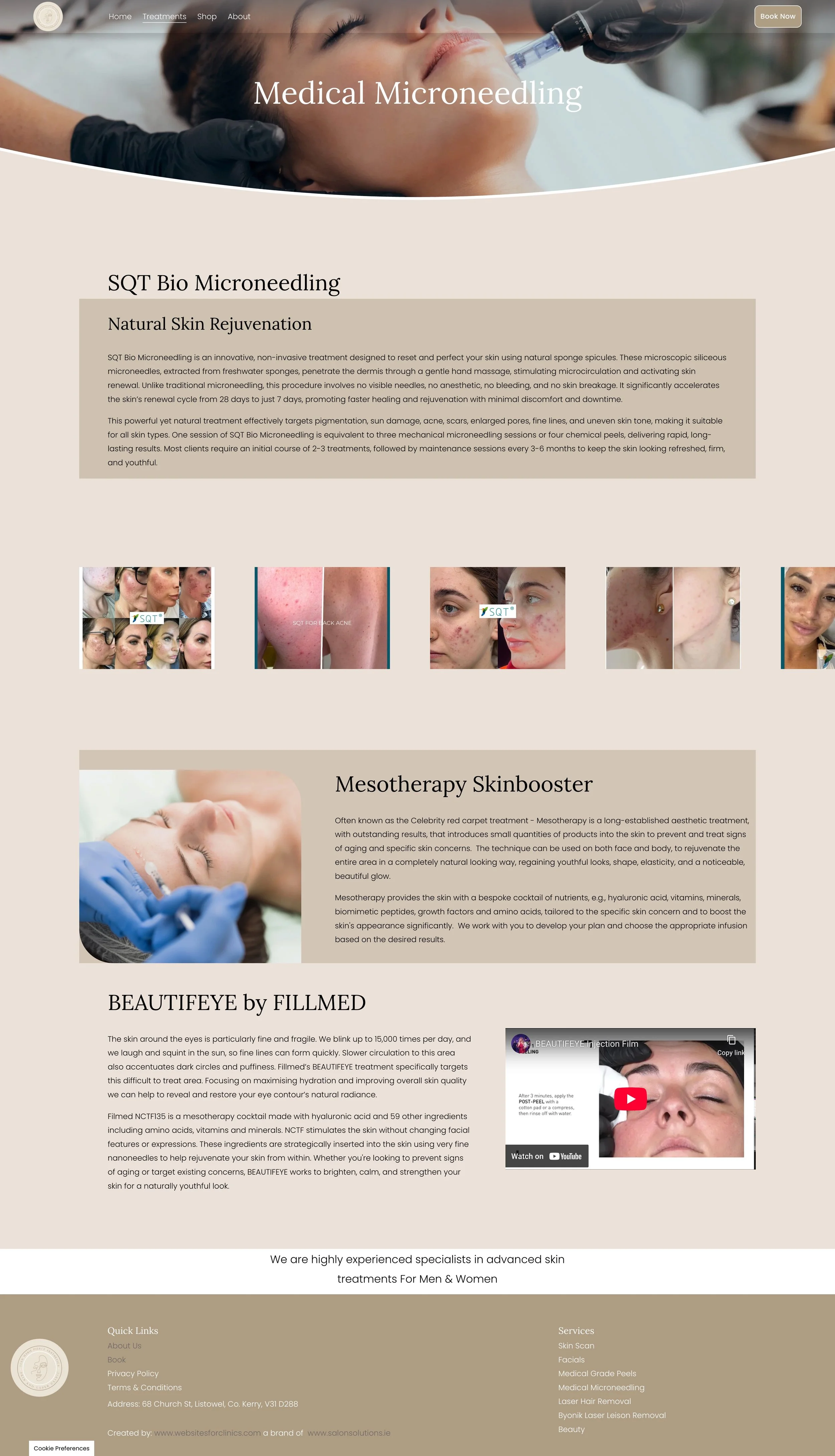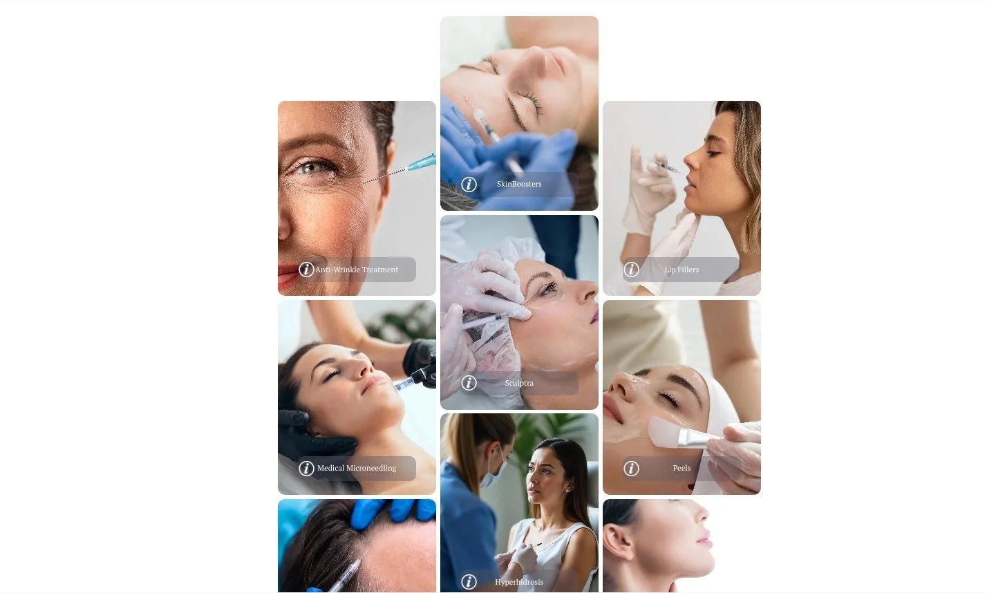 A Home page that captures the brand and culture of your aesthetic clinic and provides clear and logical access to all your treatments.