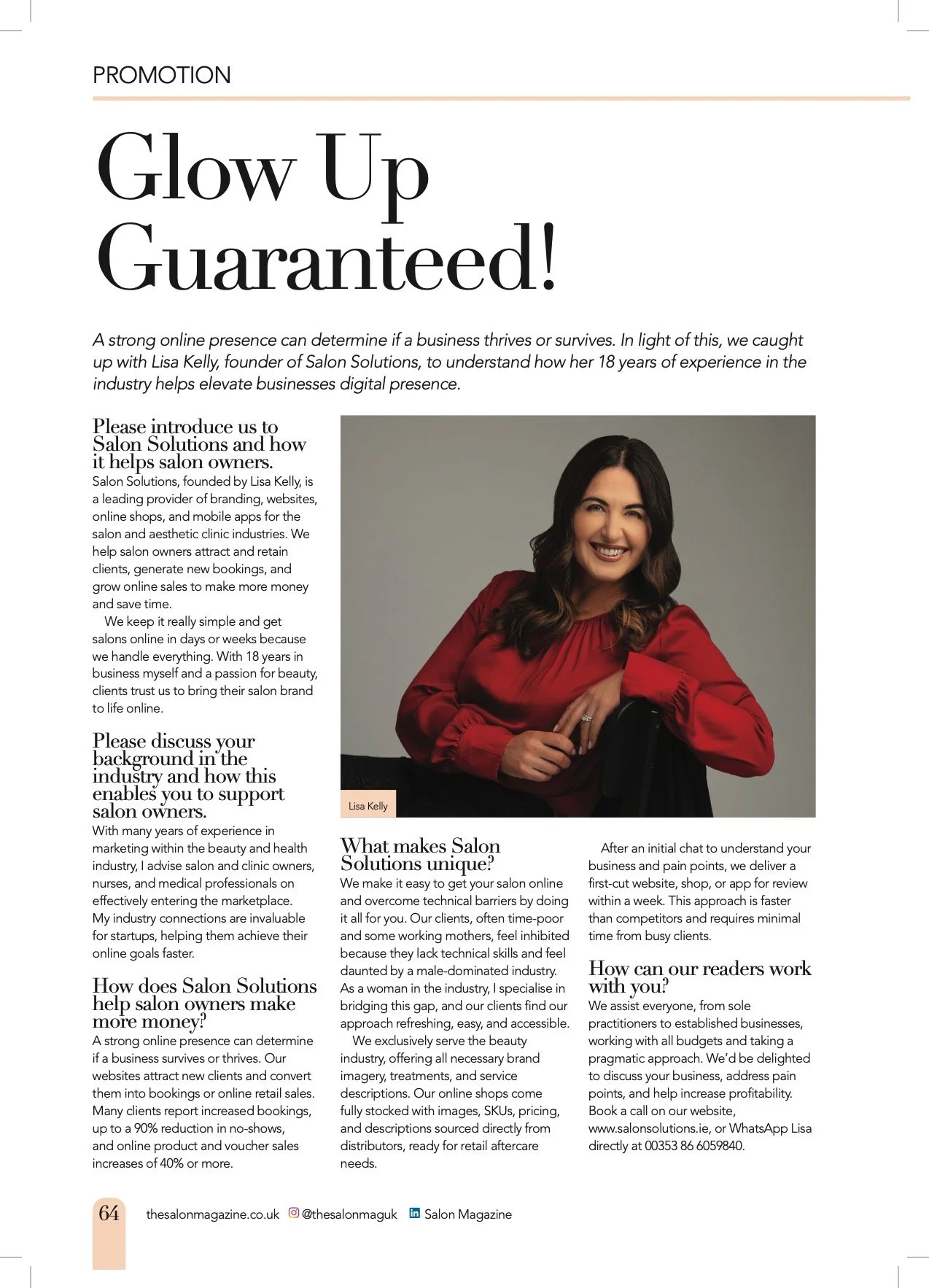 In Aesthetic Medicine Magazine, Lisa Kelly shares how Salon Solutions helps salon owners attract clients, grow bookings and boost online sales — fast.